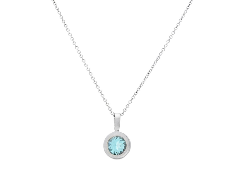PENDANT/CHAIN, 18K white gold, blue topaz, length pendant approx. 6 mm, length chain 42 cm, weight 2,5 g, case.