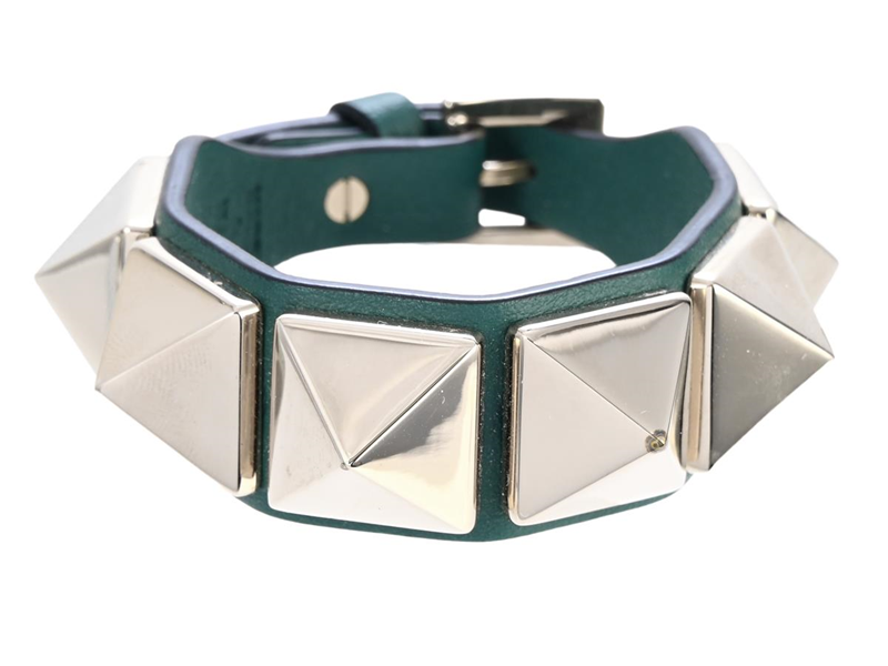 BRACELET, VALENTINO, Rockstud Bracelet, green leather, gold-tone metal studs, length 17-20 cm, width 2 cm, jewellery pouch.