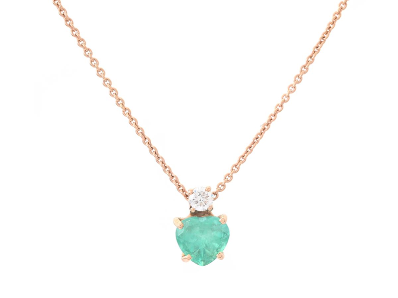 PENDANT WITH CHAIN, 18K rose gold, heartshape emerald approx. 1,31 ct, brilliant cut diamond approx. 0,16 ct, approx. TW/VS, height 11 mm, chain 42 cm, weight 3,8 g.
