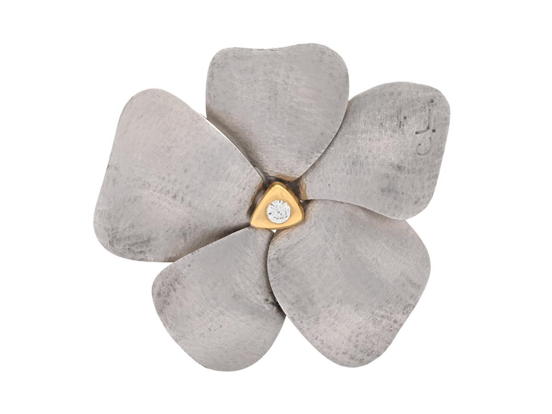 OLE LYNGGAARD, brooch/pendant, Blomst, 18K white gold/gold, brilliant cut diamond 0,08 ct, TW/VS, measurements 43x42 mm, weight 18 g.