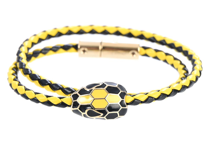 BRACELET, BVLGARI, Serpenti Forever, woven yellow, black leather, gold-tone hardware, length 37 cm, tag, jewellery pouch, case.