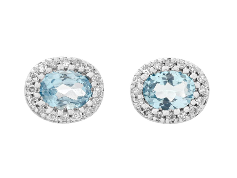 EARRINGS, 18K white gold, oval blue topazes approx. 0,40 ctw, single cut diamonds approx. 0,06 ctw, pushback, measurements 6,0 x 5,0 mm, weight 0,8 g.