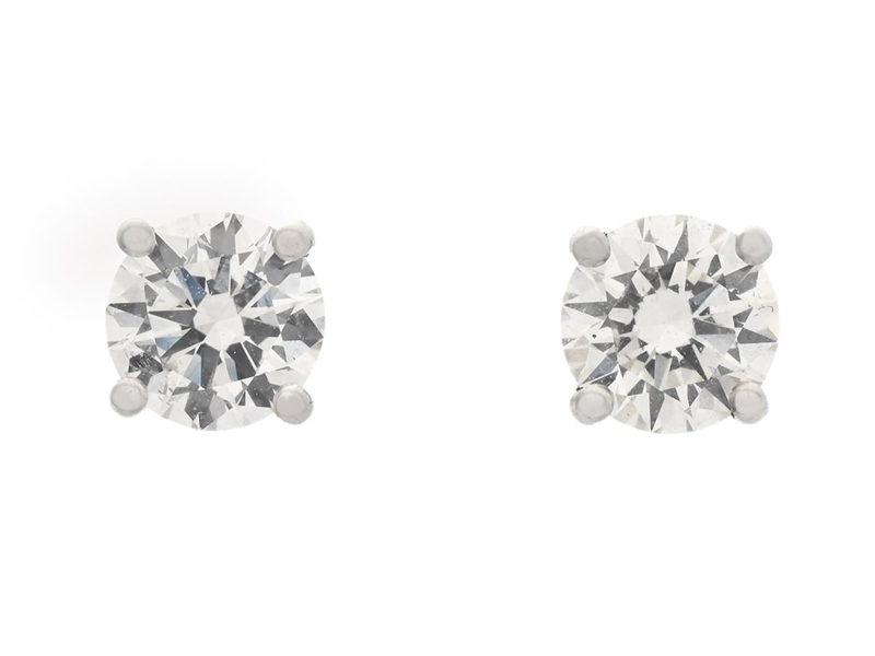 SOLITAIRE EARRINGS, 18K white gold, brilliant cut diamonds 0,61 ctw, TW(F)/VS2, 2 x GIA Diamond Dossier 6531576017 and 6535575667, pushback, weight 1,7 g.