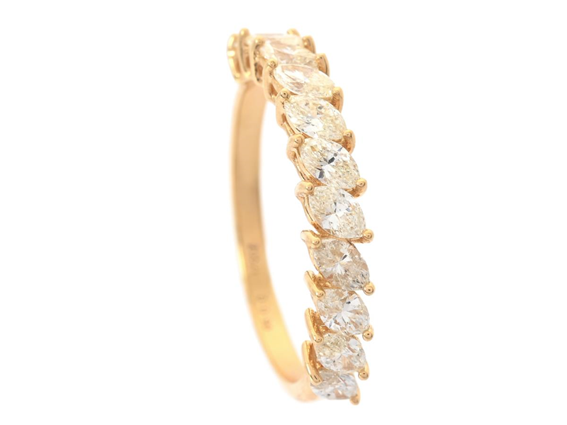 RING, 18K gold, 11 marquise cut diamonds 0,90 ctw, Light yellow/VS-SI, size 17 mm, weight 2,3 g.