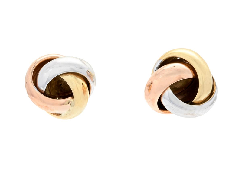 EARRINGS, 18K three-coloured gold, knots approx. 8,0 mm, pushback, weight 2,4 g.