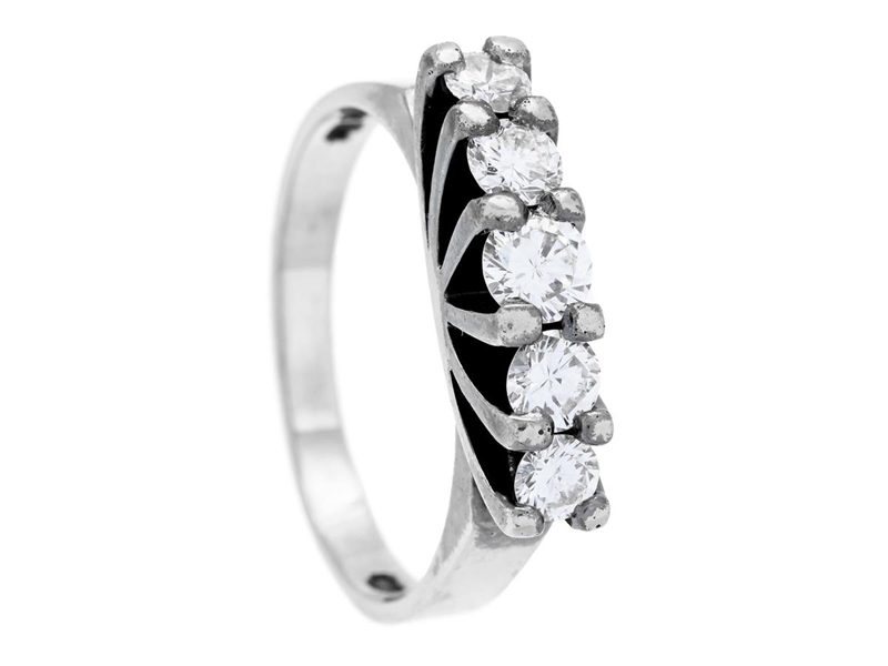 RING, 18K white gold, brilliant cut diamonds 0,66 ctw according to engraving, size 16,75+ mm, weight 4,6 g, one of diamonds with notch on girdle, notch on culet.