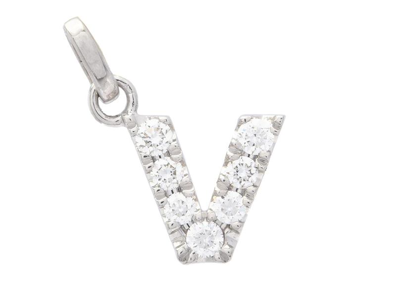 LETTER PENDANT, letter V, 18K white gold, 7 brilliant cut diamonds approx. 0,15 ctw, approx. TW-W/VS-SI, height 7,5 mm, width 8,0 mm, weight 0,5 g.