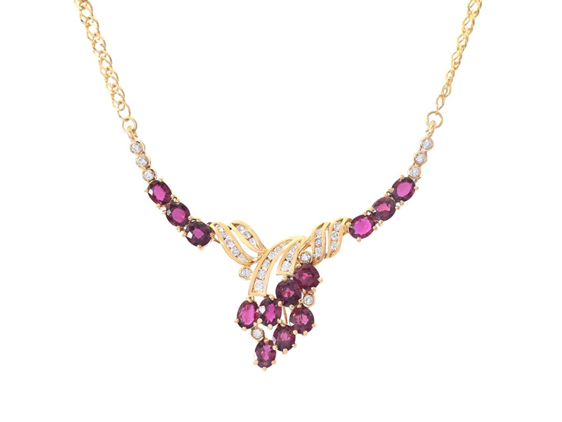 NECKLACE, 18K gold, brilliant cut diamonds approx. 0,28 ctw, approx. W-TCr/SI-P, oval cut rubies, length 36 cm, weight 8,9 g, notch on a few culets.