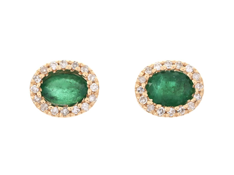 EARRINGS, 18K gold, oval faceted emeralds approx. 0,38 ctw, inclusions reach the surface, single cut diamonds approx. 0,06 ctw, pushback, measurements approx. 6,0 x 5,0 mm, weight 0,9 g.