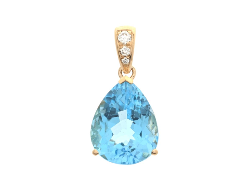 PENDANT, 18K gold, drop shaped faceted blue topaz 3,18 ct, 3 brilliant cut diamonds approx. 0,03 ctw, approx. W/VS-SI, length inc loop 16,0 mm, weight 1,4 g.