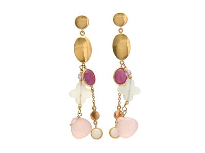 EARRINGS, 18K gold, marquise cut pink sapphires 0,51 ctw, 54 brilliant cut diamonds 0,49 ctw, approx. TW/VS, pushback, height 27,0 mm, weight 3,8 g.