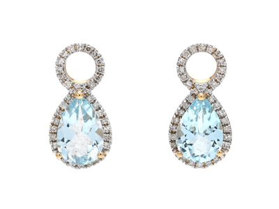 EARRINGS ATTACHMENTS, 2 items, 18K gold, briolett cut aquamarine approx. 12,0 x 8,0 mm, loop 4,0 mm, weight 2,6 g.