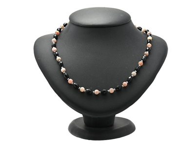 NECKLACE, dyed pink agate, button shape cultured freshwater pearls, magnetic catch, silver-tone hardware, length 48 cm, loose threaded.