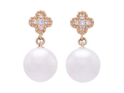 PEARL EARRINGS, 18K white gold with cultured freshwater pearls 9,1 mm, 2 brilliant cut diamonds 0,05 ctw, W/SI, pushback,