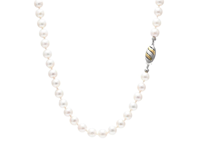 PEARL NECKLACE, cultured pearls approx. 6,0-6,5 mm, clasp i 18K gold and white gold, length approx. 48 cm, weight 24,1 g.