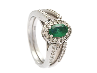 EARRINGS, 18K white gold, emerald, single cut diamonds approx. 0.26 ctw, weight 2,5 g.