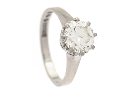 SOLITAIRE RING, 18K white gold, briljantsliupad diamond 0,38 ct according to engraving, approx. W/VS, size 17 mm, weight 2,9 g. worn prongs.