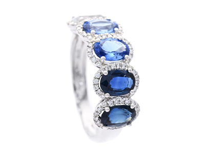 RING, 18K gold, oval cut treated sapphires 10,36 ctw according to engraving, brilliant cut diamonds 0,20 ctw according to engraving, approx. TW/VS, size 17,25 mm, weight 11,3 g, some stones with notches.