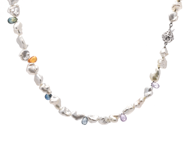 NECKLACE, faceted Agate, mother of pearl shell, clasp and details in sterling silver, length 65 cm.