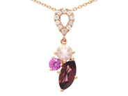 PENDANT CHAIN, 18K pink gold with garnet 0,72 ct, rosen quartz 0,23 ct, pink sapphire 0,12 ct. 10 brilliant cut diamonds 0,06 ctw, W/SI length 40-42 cm