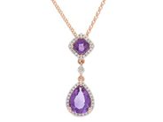 PENDANT/CHAIN, 18K pink gold with 2 amethysts 1,22 ctw, 47 brilliant cut diamonds 0,10 ctw, approx W/SI, length 42 cm,