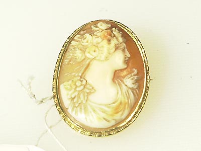 BROSCH, 18K guld med camé, 3,7 x 2,8 mm, vikt 7,1 gram.