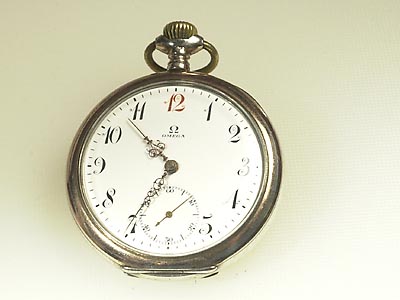 OMEGA, serie nr. 4471479, fickur, ankarur, silver, rödtolva, bucklor, ca 1914.