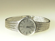 OMEGA, damur, cal 625, serie nr. 38004098, 18K vitguld, manuell, safirglas, gravyr, integrerad länk, längd 158-164 mm, ca 1975.