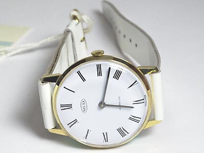 NILAX, herrur, gulmetall, manuell, plexiglas, konstläderband, oanvänd, ca 1970.