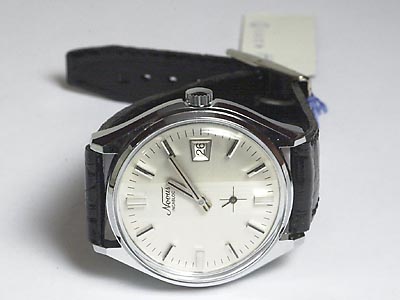 NOVUS, herrur, vitmetall, manuell, plexiglas, liten sekundvisare, datum, konstläderband, oanvänd, ca 1970.