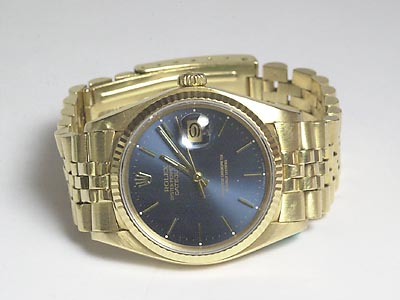 ROLEX, Oyster Perpetual, Datejust, Ref nr. 16018, serie nr. 6267675, herrur, 18K guld, automatisk, safirglas (skadat), datum, Jubileelänk, cert, oktober 1980.