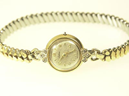 PIAGET, Cal 6N, Serie nr. 595633, Ref nr. 3355, damur, 18K guld, manuell, safirglas, skadad urtavla, går ej, integrerad länk, längd 170 mm, totalvikt 68 gram, 1960-tal.