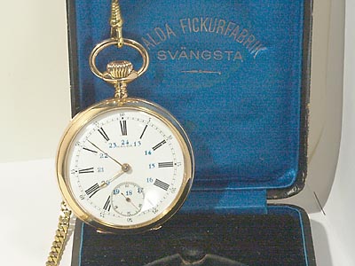 HALDA, fickur, No. 2702, Verk H, Boett R6, 18K guld, ankarur, monogram, ca 1895, kedja gulmetall, etui.