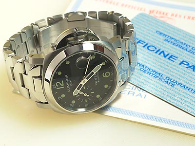 PANERAI, Luminor GMT, Serie nr. 363390, Ref nr. PAM00160, OP6594, Boett nr. BB1124678, G268/400, 40 mm, herrur, stål, automatisk, safirglas, datum, originallänk, Ref nr. BB JB, cert, april 2005, box.