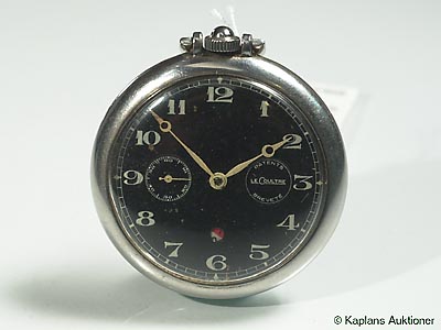 LE COULTRE, fickur, 47 mm, Serie nr. 11469, Boett nr. 2187, stål "Staybrite", ankarur, 8-dagars, gångreservindikator, skadad urtavla, 1930-tal.