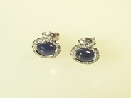 COLLIER & ÖRH, 12 mm kulor av blå kalcedon (8 mm i örhängena), lås och stift i silver.