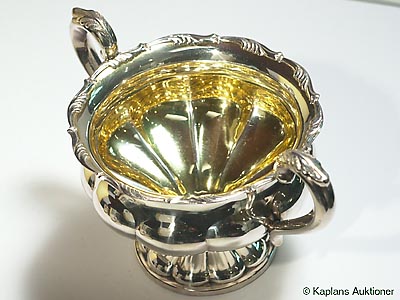 GRÄDDKANNA + SOCKERSKÅL i silver, finska stämplar, förgyllda invändigt.
