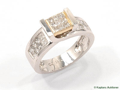 RING, 14K vitguld/rödguld, 25 princesslipade dia. ca 1,00 ctv I-J(Tcr-Cr)/ /SI-P, vikt 7,2 g, stl 17 1/4+