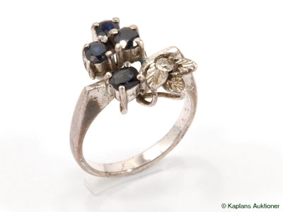 SAFIRRING, silver med 4 safirer och gammalslipad diamant ca 0,06 ct, stl 16 3/4