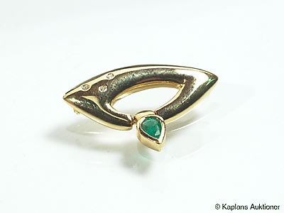 HÄNGE, 18K guld, droppslipad smaragd, 3 briljanter, vikt 2,2 g