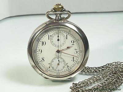 OMEGA, fickur, 55 mm, kronograf, Boett nr. 3303429, silver, ankarur, skadad urtavla, bucklor, ca 1907, kedja silver.