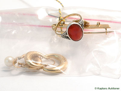 1 Ring med sten 1 Brosch 4 Örhängen 18k def. 9,4gr