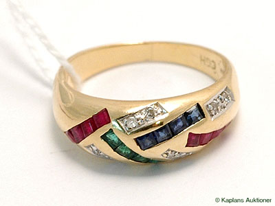 Ring, med stenar och diamanter 8xca.0,008ct 18K Ø16,1/2 4,9g
