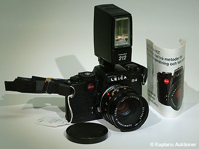 Kamera, Leica R 4, Objektiv Leitz 1:2/50, Blixt Toshiba, Väska