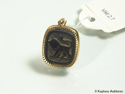 1 Hänge 18k med svart sten "lejon". Vikt 2,7g
