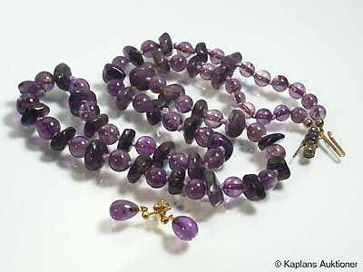 COLLIER, ÖRHÄNGEN, 18K guld med ametister, längd 62 cm, stift