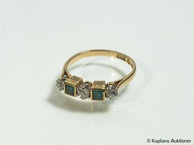 SMARAGDRING, 18K guld med 2 smaragder och 3 gammalslipade diamanter ca 0,18 ctv, vikt 3,2 g, stl 17 1/4