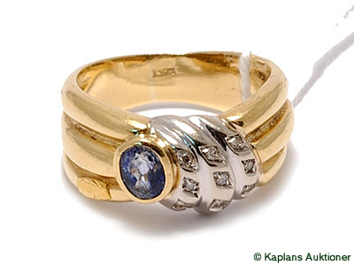 Ring, med sten och diamanter 9 x ca 0,01 ct 18K Ø 16 1/2 7,0 g