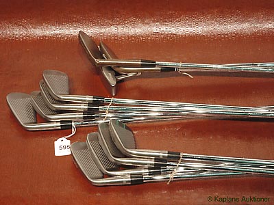 1 golfset Titleist 990 3-P, 2 wedge Cleveland samt Cobra (skick bör ses), 1 putter ping