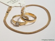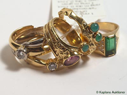 1 ring m.dia 0,19ct "strömdahl", 1 ring m.dia 0,15ct, 1 ring m.grön sten + dia 0,12ct, 2 ringar med stenar, 18k. Vikt 33,29g